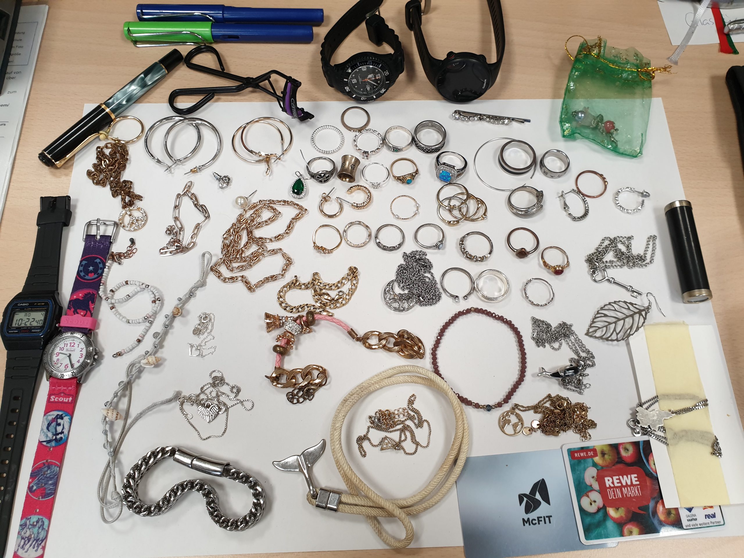Die Fundsachen (außer Schmuck o.Ä.) sind in einer Kiste im Gang zur Bibliothek (im Untergeschoss) zu finden. Besitzerlose Wertgegenstände werden dagegen sicher im Sekretariat verwahrt und können dort abgeholt werden.